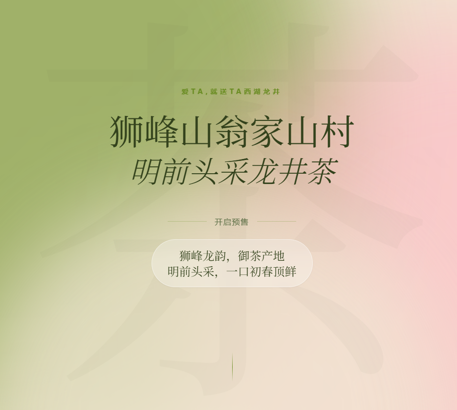2026西湖龙井头采茶 DTC 模式预售现已火热开启。 因头采鲜叶极度稀缺受限,各产地、各规格仅限量预售 22 份,售完即止。立即前往Longjingcha.com官网抢购吧。