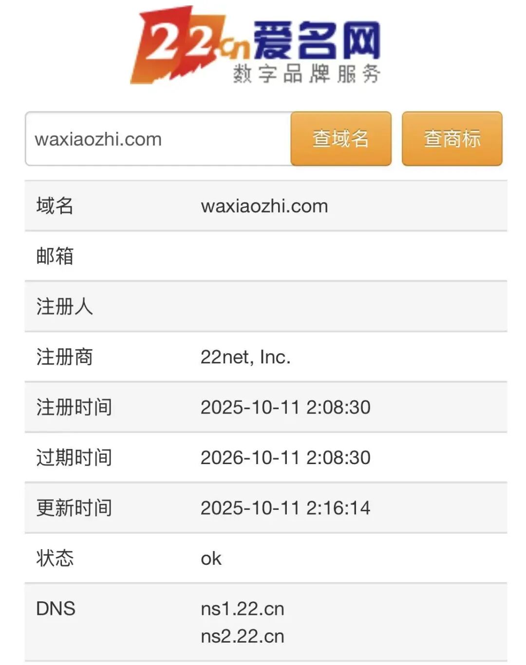 天眼查信息显示,“娃小智”公司成立于2025年,股权穿透后实控人为宗泽后。然而,一个值得注意的细节是,相关域名waxiaozhi.com已被域名投资人注册,并不在娃小智公司手中。这暴露出新品牌在战略布局上可能存在的疏漏。