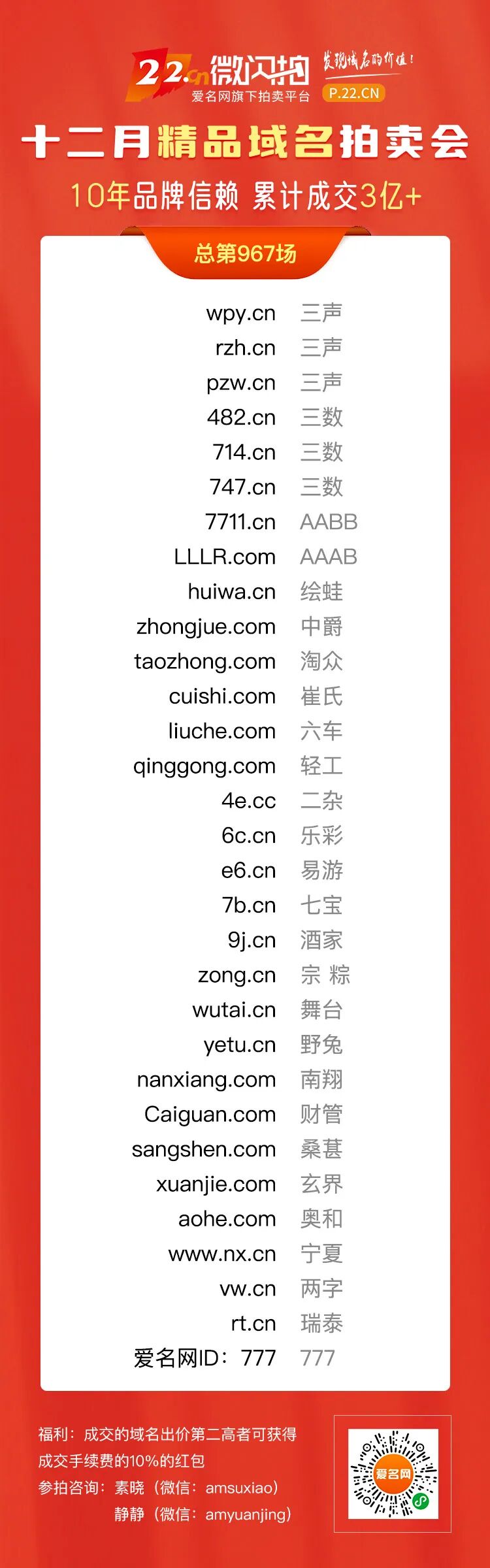 爱名网12月精品拍:淘众、财管、舞台、奥和、宁夏、玄戒、rt.cn等好域名今晚开拍!