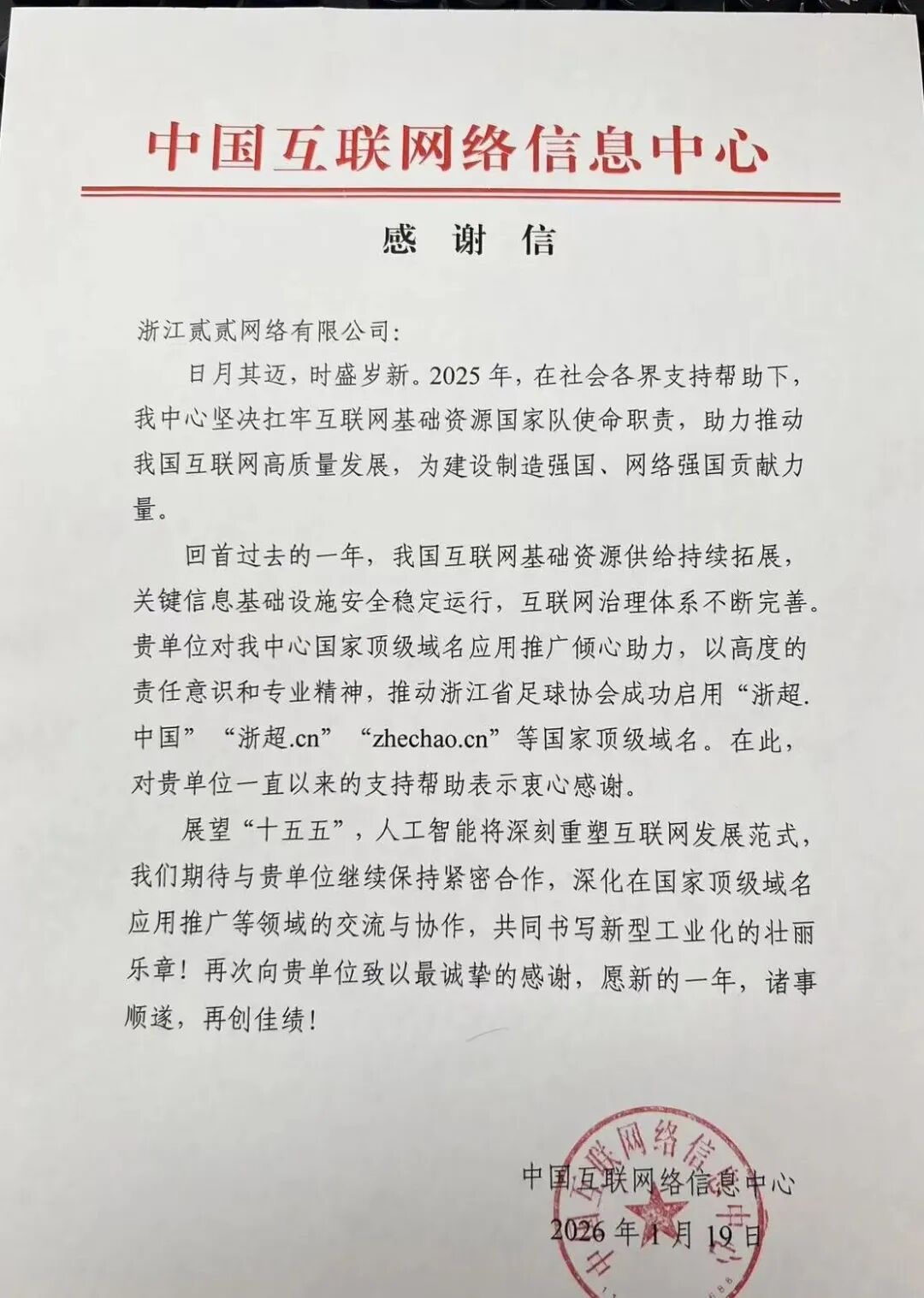 这封感谢信不仅是荣誉,更是责任与动力。它代表着权威机构对爱名网专业能力与服务水平的认可,也激励我们在未来的道路上更加坚定前行。